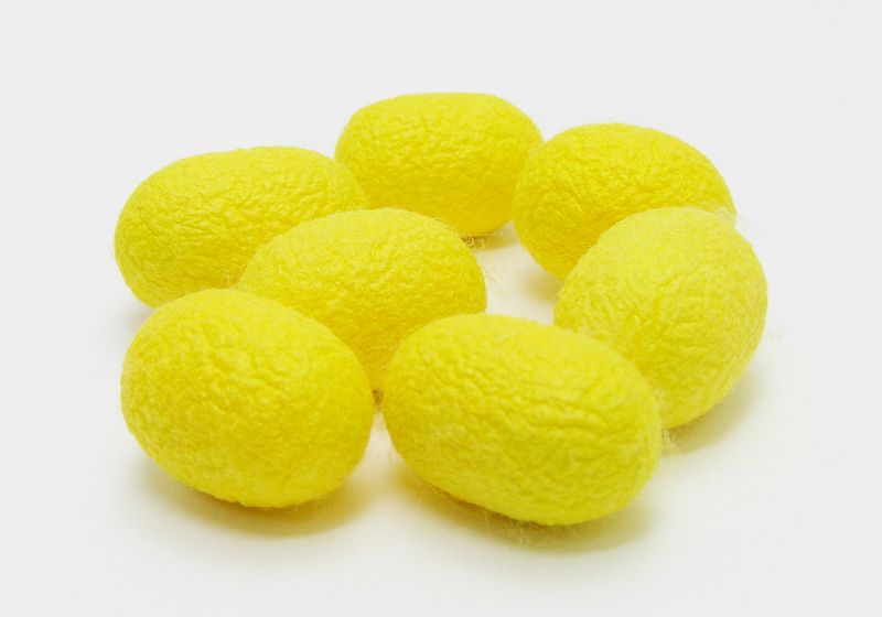 桑の葉で育てると鮮やかな黄色(黄緑色)の繭を作ります。