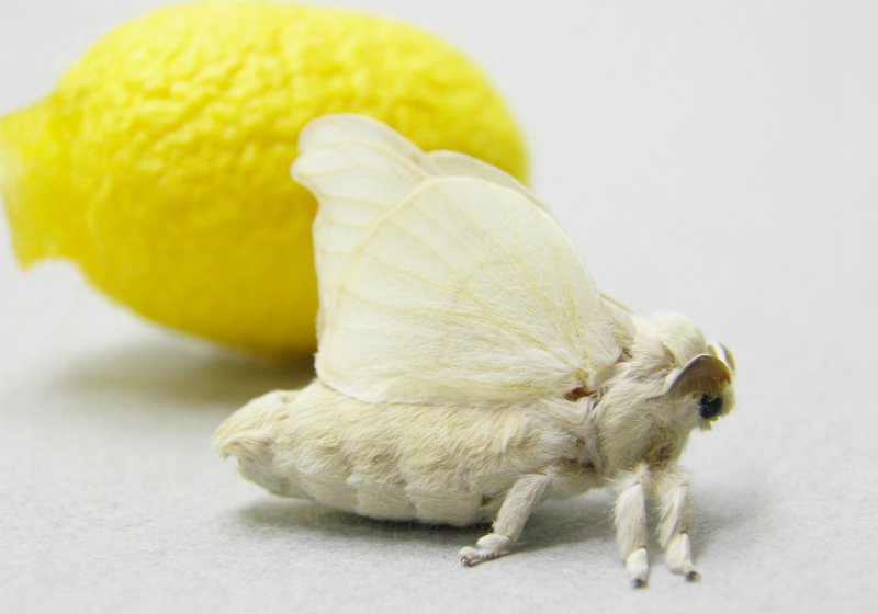 カイコ成虫写真集 品種名:里山黄金(さとやまこがね)
