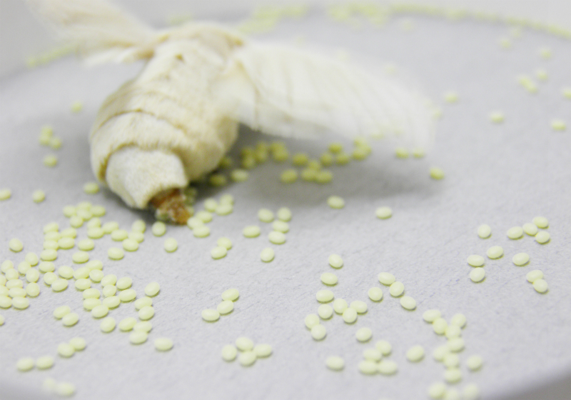 養蚕業では産卵のために、繭から蛹を取り出して羽化させます。 -
