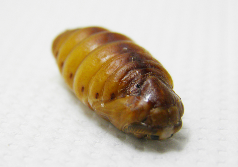 人工飼料での飼育の場合は色が淡い黄色になります。 -