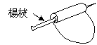 楊枝に接着剤を塗り、薄く剥いだ繭を巻きます。