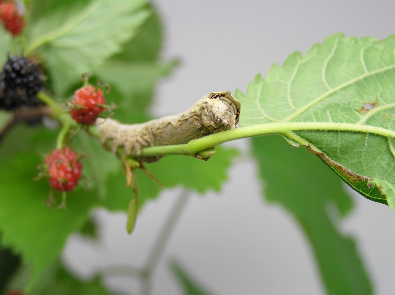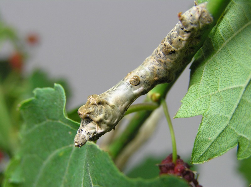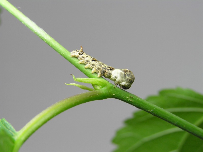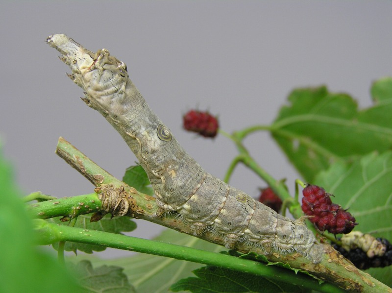 人の気配を感じるとじっと動かなくなります。クワコもカイコと同じとてもおとなしい昆虫のようです。