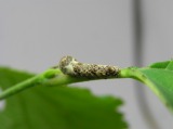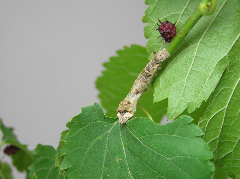 大きさ約6mmで採取、カイコでは2令ぐらいと思われます18日後に繭を作りました。