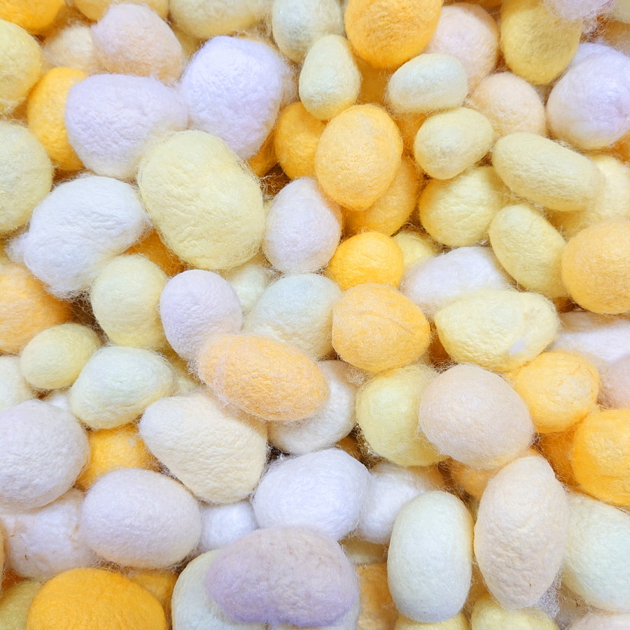 | TM1140 | 黄繭ブレンド クラフト用種繭 蛹取り出し済み50g 小型の繭が混じります 旧年生産・退色・つぶれ・汚れのある繭が混じります |